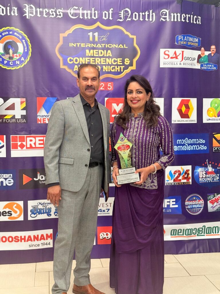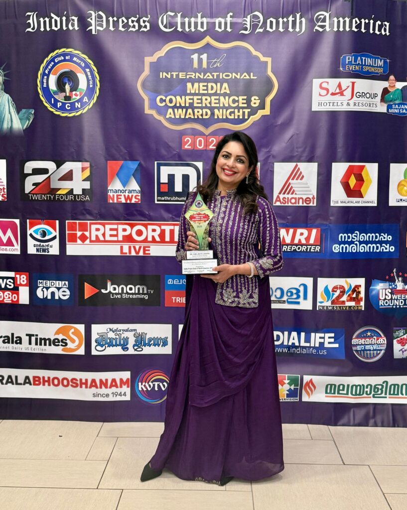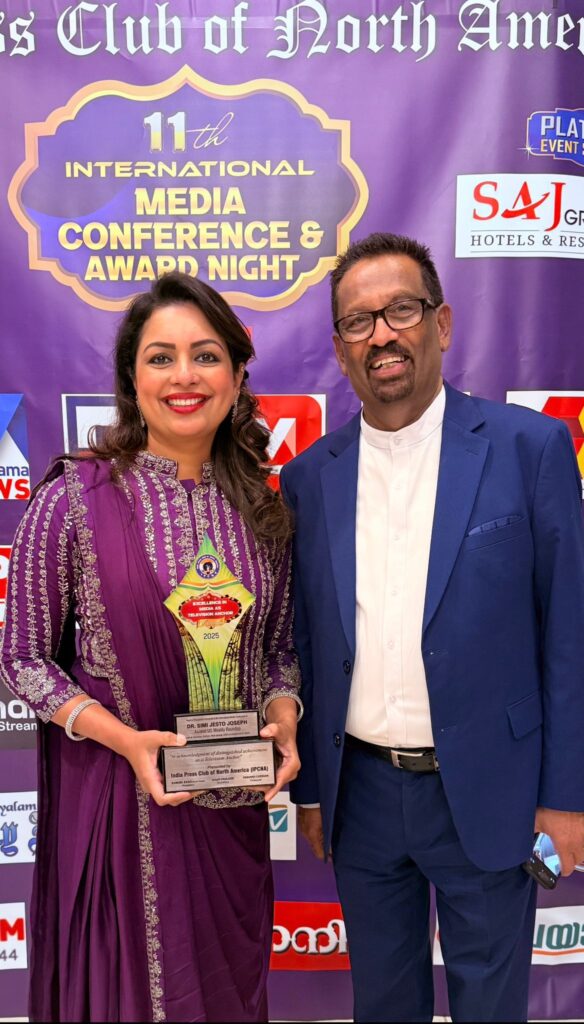 ഡോ. സിമി ജെസ്റ്റോ ജോസഫിന് 2025-ലെ ഐ.പി.സി.എൻ.എ (India Press Club of North America) മീഡിയ എക്സലൻസ് അവാർഡ്. ടെലിവിഷൻ ആങ്കറിങ്ങ് വിഭാഗത്തിലാണ് പുരസ്കാരം.