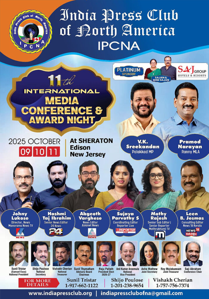 ന്യൂയോർക്കിൽ നിന്ന് തുടങ്ങി ഇപ്പോൾ ന്യൂജേഴ്സിയിലെത്തുമ്പോൾ ഐ.പി.സി.എൻ.എ. മാധ്യമ മേഖലയിലെ അറിവുകൾ പങ്കുവെച്ച് വളരുകയാണ്. ദൃശ്യ, ശ്രാവ്യ, പത്ര, സോഷ്യൽ മീഡിയകളുടെ സത്യസന്ധതയും ക്രെഡിബിലിറ്റിയും നിരന്തരം ചോദ്യം ചെയ്യപ്പെടുന്ന ഒരു കാലഘട്ടമാണിത്. കേൾക്കുന്നതും കാണുന്നതും സെൻസേഷണലാക്കി പൊലിപ്പിക്കുന്ന മാധ്യമപ്രവർത്തന ശൈലി പലപ്പോഴും വിമർശിക്കപ്പെടുന്നു. ഈ സാഹചര്യത്തിൽ, കുടിയേറ്റ ഭൂമിയിലെങ്കിലും മൂല്യവത്തായ ഒരു മാധ്യമ സംസ്കാരത്തിന്റെ വിത്തുകൾ വിതയ്ക്കാൻ ഇന്ത്യ പ്രസ് ക്ലബ്ബിന് സാധിക്കുമെന്നതിൻ്റെ ദൃഷ്ടാന്തമാണ് ഈ സമ്മേളനം.