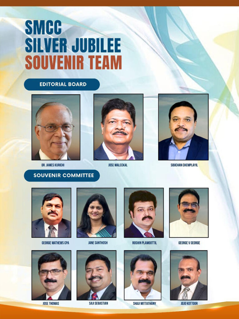 കോൺഫറൻസ് രജിസ്ട്രേഷൻ ചെയർമാനും, ജൂബിലി വെബ്സൈറ്റ്, ഡിജിറ്റൽ മീഡിയ പരസ്യപ്രസിദ്ധീകരണങ്ങൾ എന്നിവയുടെ ചുമതല വഹിച്ച സിബിച്ചൻ ചെമ്പ്ളായിൽ ആയിരുന്നു സുവനീറിന്റെ ചീഫ് എഡിറ്റർ. 2009-ൽ പ്രസിദ്ധീകരിച്ച എസ്.എം.സി.സി. പത്താം വാർഷിക സ്മരണികയുടെ ചീഫ് എഡിറ്ററും അദ്ദേഹം തന്നെയായിരുന്നു. ഡോ. ജയിംസ് കുറിച്ചി കോർഡിനേറ്ററായ സുവനീർ കമ്മിറ്റിയിൽ ജോർജ് മാത്യു സി.പി.എ., ജോസ് മാളേയ്ക്കൽ, ജോർജ് വി. ജോർജ്, ജോജോ കോട്ടൂർ, സജി സെബാസ്റ്റ്യൻ, ജോസ് തോമസ്, റോഷിൻ പ്ലാമൂട്ടിൽ, ജയിൻ സന്തോഷ്, ഷാജി മിറ്റത്താനി, സിബിച്ചൻ ചെമ്പ്ളായിൽ എന്നിവർ അംഗങ്ങളായിരുന്നു.
