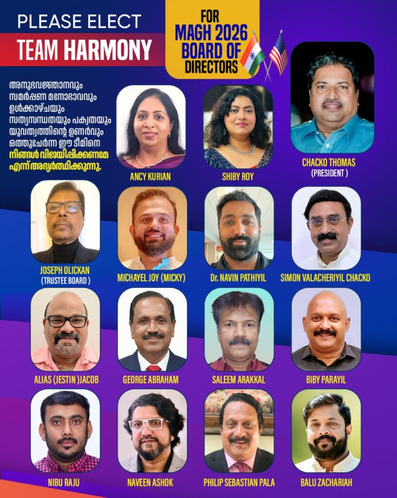 ‘ടീം ഹാര്മണി’യുടെ വിജയ പ്രതീക്ഷ 100 ശതമാനമാണെന്നും ഇച്ഛാശക്തിയും ആര്ജവവും ദീര്ഘവീക്ഷണവുമുള്ളവരാണ് തന്റെ പാനലിലുള്ളവരെന്നും ചാക്കോ തോമസ് ചൂണ്ടിക്കാട്ടുന്നു. ഡയറക്ടര് ബോര്ഡിലേയ്ക്ക് ആന്സി കുര്യന്, ഷിബി റോയി (വിമന്സ് റെപ്പ്), ആലീസ് തോമസ്, മിഖായേല് ജോയി (മിക്കി), നേര്കാഴ്ച്ച പത്രാധിപര് സൈമണ് വാളാച്ചേരില്, ഏലിയാസ് (ജസ്റ്റിന്) ജേക്കബ്, ജോര്ജ് എബ്രഹാം, സലീം അറയ്ക്കല്, ബിബി പാറയില്, നിബു രാജു, നവീന് അശോക്, ഫിലിപ്പ് സെബാസ്റ്റ്യന് (പാല), ബാലു സഖറിയ (ബോര്ഡ് ഓഫ് ഡയറക്ടേഴ്സ്), ഡോ. നവീന് പാതയില് (യൂത്ത് റെപ്പ്), ജോസഫ് ഒലിക്കന് (ട്രസ്റ്റീ ബോര്ഡ്) എന്നിവരാണ് മത്സരരംഗത്തുള്ളത്.