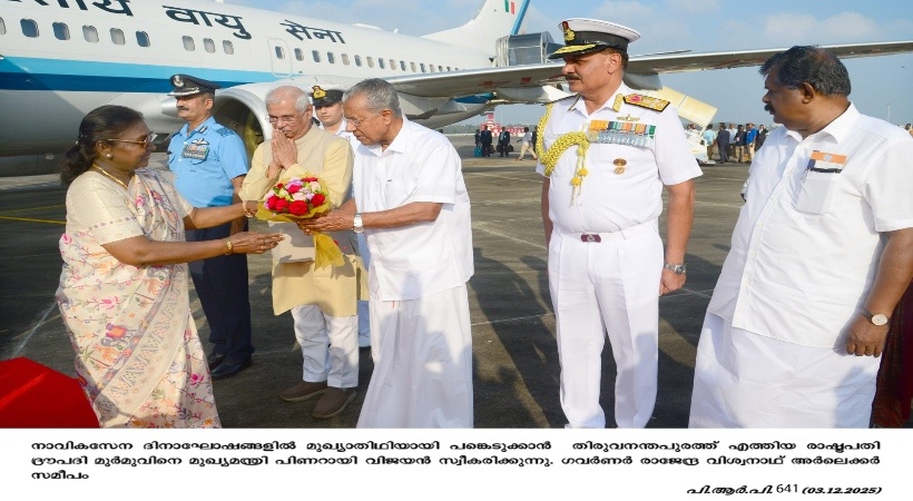 തദ്ദേശീയ സാങ്കേതികവിദ്യകൾ വികസിപ്പിച്ച് വികസിത ഭാരതമെന്ന ലക്ഷ്യം കൈവരിക്കുന്നതിന് ഇന്ത്യൻ നാവികസേന ഊർജം പകരുകയാണെന്നും രാഷ്ട്രപതി ചൂണ്ടിക്കാട്ടി. വിമാനത്താവളത്തിൽ നിന്നും വേദിയിലെത്തിയ രാഷ്ട്രപതിക്ക് എം എച്ച് 60 ആർ ഹെലികോപ്റ്ററുകൾ സല്യൂട്ട് നൽകി.