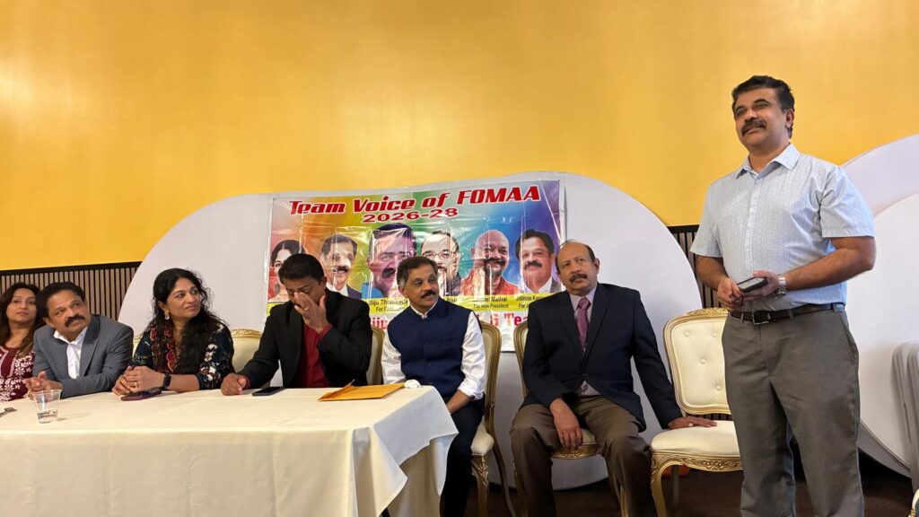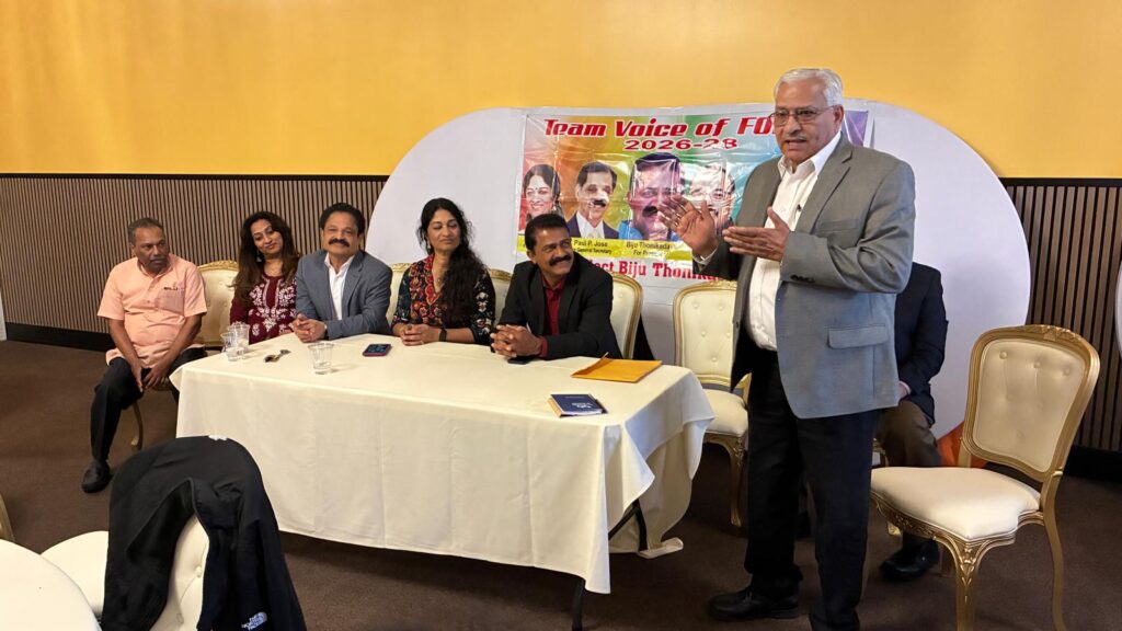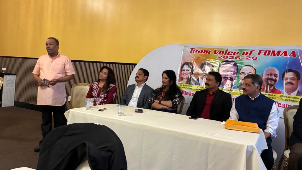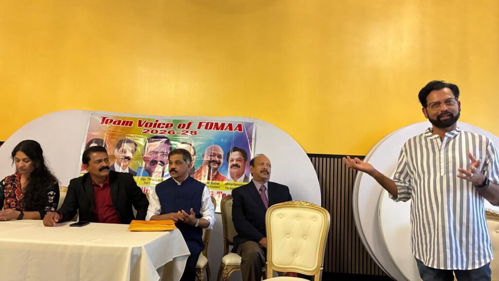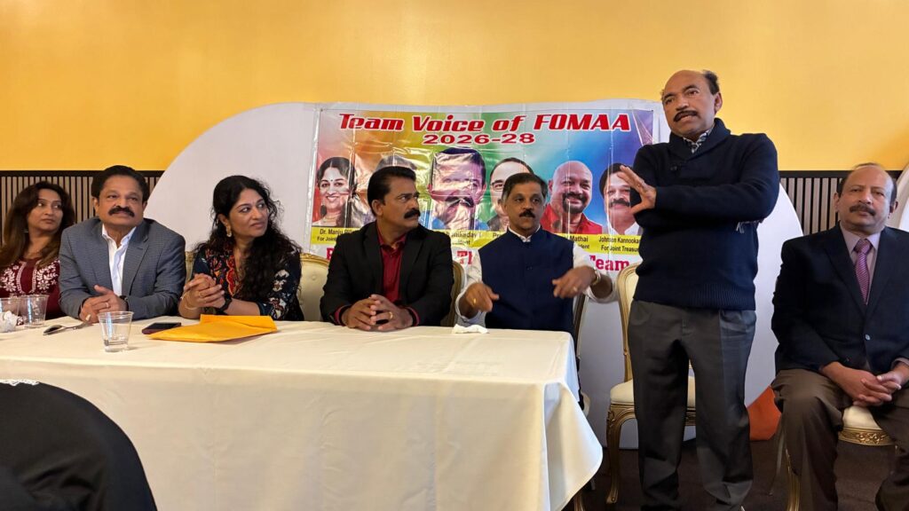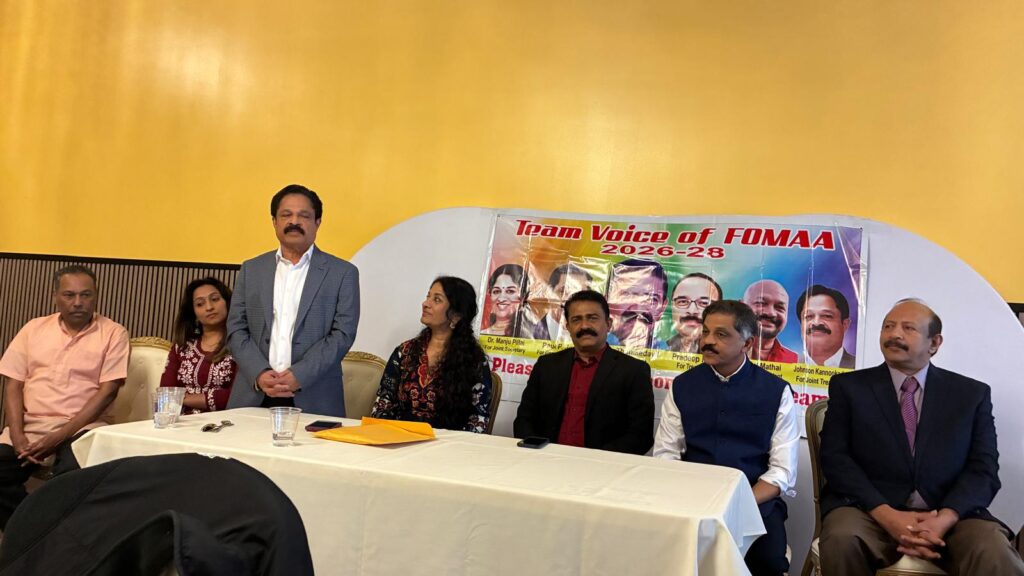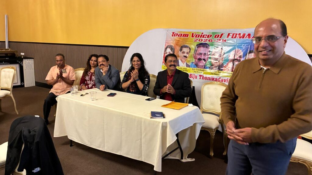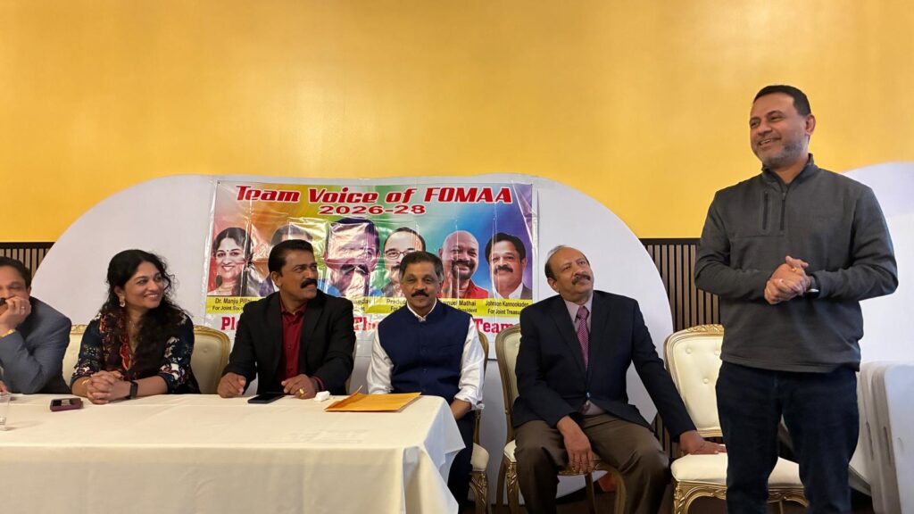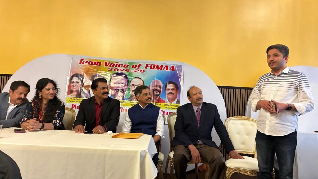 ഡിട്രോയിറ്റ്: പ്രതീക്ഷാ നിര്ഭരവും ജനക്ഷേമകരവുമായ പദ്ധതികള് നടപ്പാക്കുന്നതിനായി ഫോമായുടെ 2026-’28 ഭരണ സമിതിയിലേയ്ക്ക് മല്സരിക്കുന്ന ‘ടീം വായ്സ് ഓഫ് ഫോമാ’ പാനല് അംഗങ്ങള് തങ്ങളുടെ ഇലക്ഷന് കാംമ്പെയ്നിന്റെ ഭാഗമായി ഡിട്രോയിറ്റ് മലയാളി അസോസിയേഷന് (ഡി.എം.എ), കേരള ക്ലബ്, മിഷിഗണ് മലയാളി അസോസിയേഷന് (എം.എം.എ) തുടങ്ങിയ സംഘടനകളുടെ നേതാക്കളുമായി കൂടിക്കാഴ്ച നടത്തി. മാര്ച്ച് 22-ന് ഒഥന്റിക് ഇന്ത്യന് ക്വസിന് റസ്റ്റോറന്റില് നടന്ന സൗഹൃദ യോഗത്തില് വിവിധ സംഘടനാ നേതാക്കള് ടീം വോയ്സ് ഓഫ് ഫോമായ്ക്ക് ആശംസകള് നേര്ന്നു.