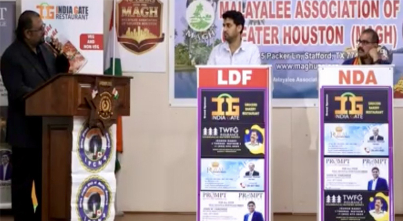 മാര്ച്ച് 29 നു ഞായറാഴ്ച വൈകുന്നേരം മാഗിന്റെ ആസ്ഥാന കേന്ദ്രമായ കേരള ഹൗസില് വൈകുന്നേരം 6 മണിക്ക് ചടങ്ങുകള് ആരംഭിച്ചു. ഇന്ത്യന്- അമേരിക്കന് ദേശീയഗാനാലാപനത്തോടെ ആരംഭിച്ച ഡിബേറ്റിനു IPCNA ഹൂസ്റ്റണ് ചാപ്റ്റര് പ്രസിഡണ്ട് ഫിന്നി രാജു സ്വാഗതം ആശംസിച്ചു. തുടര്ന്ന് MAGH പ്രസിഡന്റ് റോയ് മാത്യു ആമുഖ പ്രസംഗം നടത്തി.